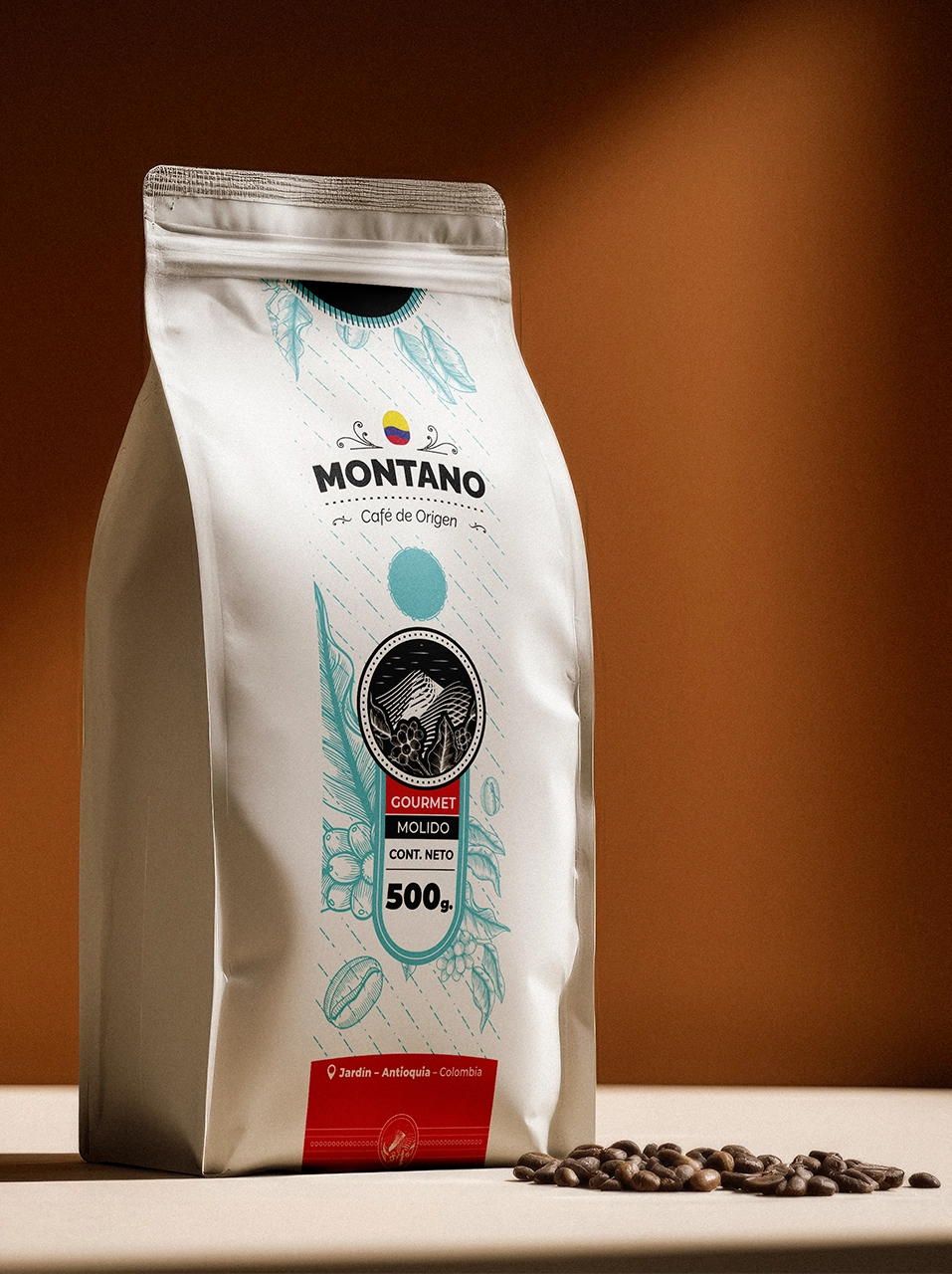 Todos los productos de Café Montano están empacados en bolsas en papel Kraft o papel blanco, son bolsas con tres capas metalizadas, cuenta con válvula desgasificadora que permite la salida del dióxido de carbono (CO2) que se produce de forma natural durante el proceso de tostado del café, sin permitir la entrada de oxígeno al envase. Tambien permite sentir el aroma de nuestro café.
